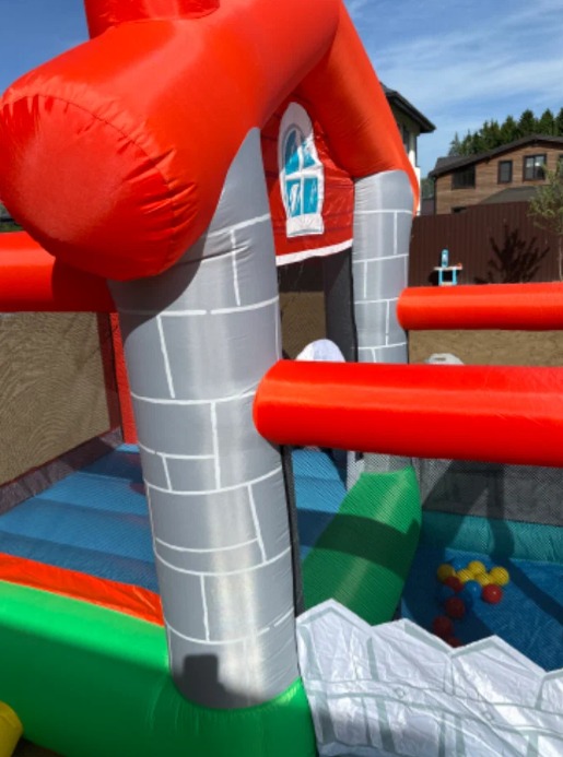 Еще одним преимуществом надувного батута в форме домика является то, что независимо от проявляемого ребенком уровня двигательной активности, эксплуатация этого изделия безопасна, ведь батут мягкий и даже при падении ребенок не поранится, а дно сухого бассейна наполнено пластиковыми шариками, что даже для самых неустойчивых малышей будет безопасным.