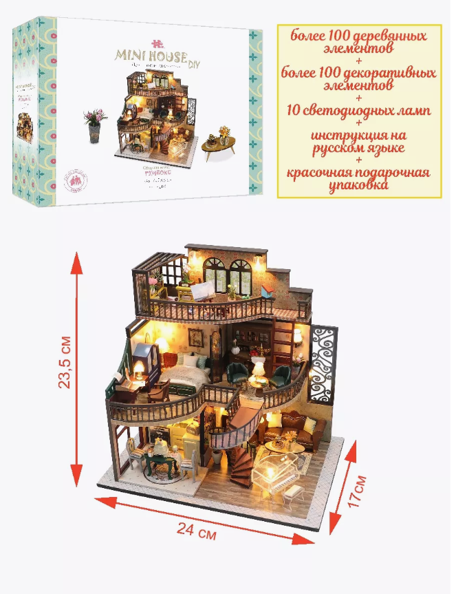 Этот деревянный конструктор идеально подойдёт как для новогоднего подарка, так и для создания собственного уголка спокойствия и красоты. Он не только развивает мелкую моторику и творческие способности, но и позволяет отвлечься от повседневной суеты, посвятив своё время созданию настоящего шедевра. Прекрасно подходит как для опытных моделистов, так и для новичков. Вы получите не просто сборную модель, а полноценный кукольный домик, который станет ярким украшением вашего интерьера или замечательным подарком для близких.