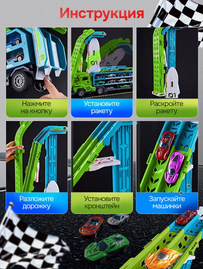 Автовоз большой Гоночный трек с машинками Rocket - это захватывающий игровой набор, который обещает часы увлекательного игрового процесса для детей любого возраста. Этот набор включает в себя крупный трек, который имитирует настоящую гоночную трассу, а также несколько маленьких машин, готовых к старту. Трек выполнен из качественных материалов, что обеспечивает его долговечность и безопасность для детей. Машинки, входящие в комплект, также выполнены из безопасных материалов и обладают отличной подвижностью, что позволяет им легко перемещаться по треку. Набор разработан таким образом, чтобы стимулировать развитие моторики у детей, а также развивать их воображение и творческие способности. Игровой процесс на треке с машинками помогает детям научиться планировать и предвидеть будущие события, а также развивать умение решать задачи. Этот набор является идеальным подарком для любого праздника, который подарит детям радость от игры и позволит им провести время в активном и полезном отдыхе.