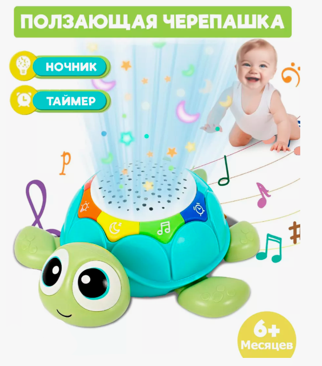 Черепашка привлекает внимание своим ярким дизайном и интерактивными функциями. Она не только ползает, но и воспроизводит разнообразные мелодии, включая звуки природы и белый шум, которые способствуют лучшему засыпанию. Музыкальная игрушка станет идеальным помощником для создания уютной и расслабляющей атмосферы в детской комнате.