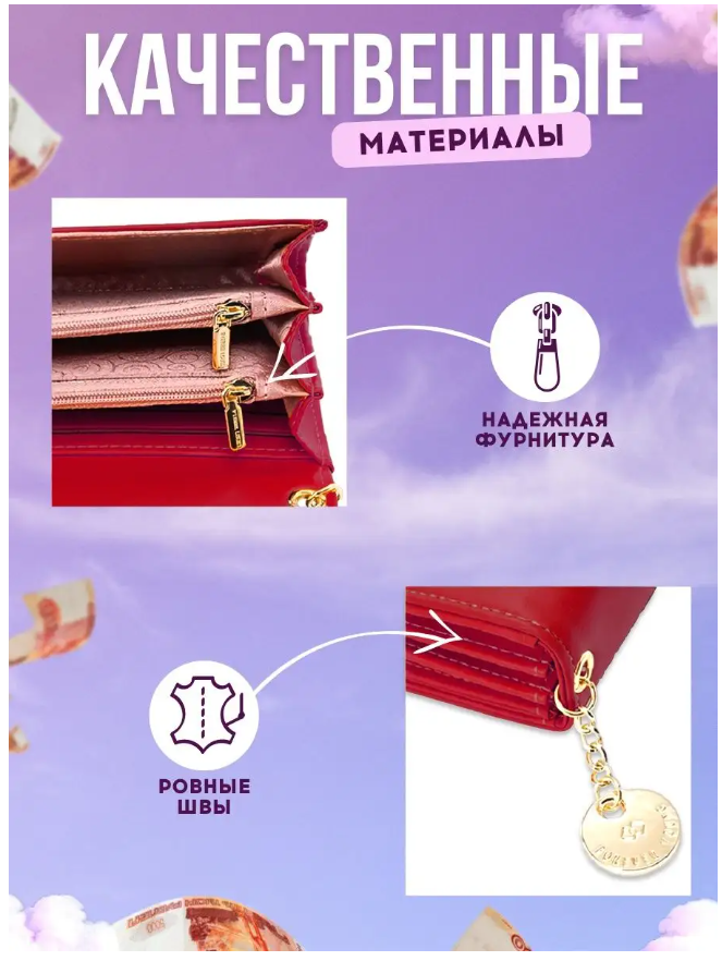 Кошелек женский поместится внутри женской сумочки и обеспечит надежное хранение кредиток и денег. Кошелек для женщин даже может заменить клатч для наряда на свидание летним вечером, настолько стильно это женское портмоне смотрится, в него спокойно помещается смартфон. Стильный большой кошелек для женщин имеет 3 отдела под бумажные купюры, 2 под монеты, 14 отделов под банковские карточки, 1 под удостоверение пропуск, поэтому кошелек очень практичен. Портмоне сшито из премиальной эко кожи . Кошелек для денег отличается высоким уровнем износоустойчивости. Классический дизайн кошелька, премиальный яркий красный цвет привлечет финансовое благополучие и дополнит ваш элегантный образ. Кошелек красный для мелочи - это идеальный подарок с доставкой сегодня, подарок маме подарок подруге подарок девушке.
