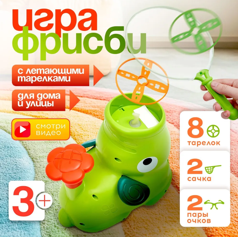 Увлекательная игра для дома и улицы с летающей тарелкой-фрисби привнесет веселье и активное времяпровождение в жизнь каждого ребенка. Эта домашняя игрушка вертушка с запуском детская не оставит равнодушными ни малышей, ни подростков. Легкая и компактная, она подходит для игр как на детской площадке, так и на открытой поляне или пляже. Ведь летающая тарелка с катапультой способна пролететь на значительное расстояние, принося массу удовольствия. Это не просто игра для дома— это настоящий способ активно провести время на свежем воздухе. Ребенок будет в восторге от забавных моментов ловли летающей тарелки сочком и соревнования с друзьями. Летающий диск вертушка детская стимулирует активность и развивает моторику ребенка. Игровой набор фрисби для дома – хороший способ развивать координацию движений и улучшать меткость у детей разных возрастов. Игровой набор фрисби выполнен из качественного ABS пластика, оснащен надежным механизмом. Диски мягкие и гибкие, благодаря чему в доме не будет повреждений. Для безопасности комплект содержит две пары защитных очков. Детская катапульта игрушка лучший способ сделать детство вашего ребенка ярким и запоминающимся.