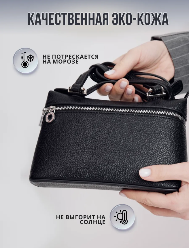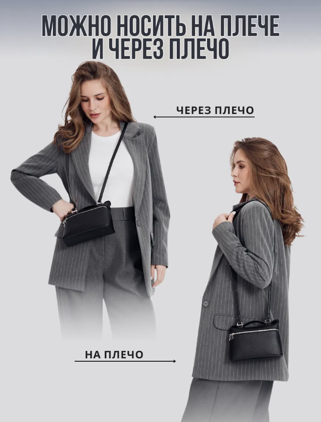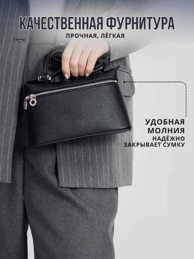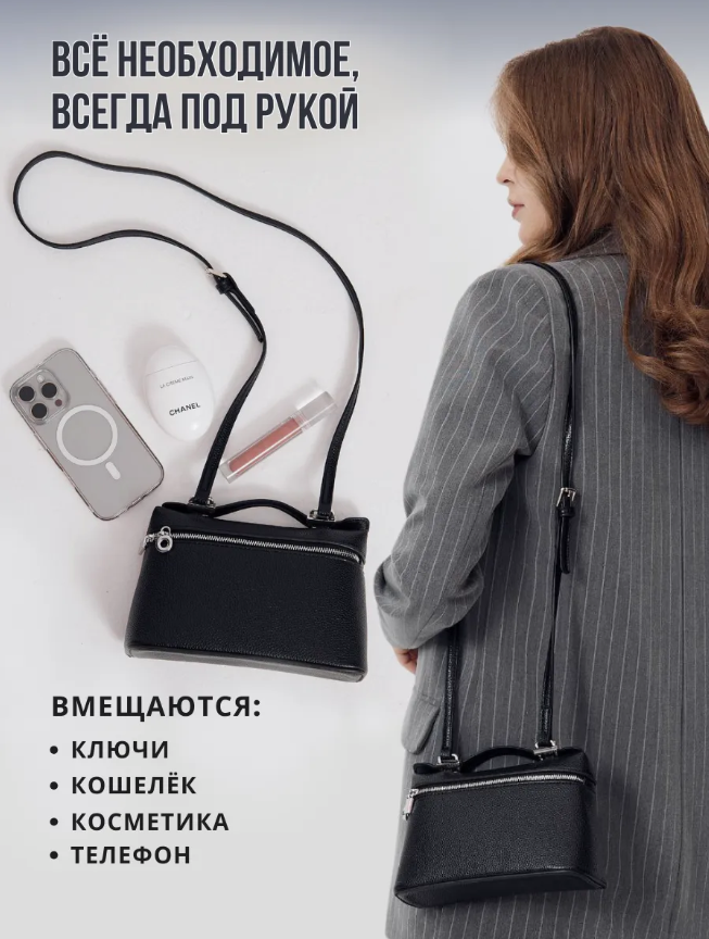 Эта сумка через плечо женская кросс-боди станет стильным аксессуаром для любой ситуации. Она выполнена в универсальном дизайне, что позволяет использовать её как сумочку на каждый день или вечерний клатч. Компактные размеры делают её идеальной для хранения всего необходимого, включая телефон и мелкие вещи.Сумочка маленькая прекрасно дополнит образ. Стильный внешний вид и функциональность делают эту модель обязательной частью гардероба. Сумка кросс-боди женская подойдет для прогулок, встреч с друзьями и вечеринок. Ее можно носить на плече или в руке.Маленькая сумка выполнена из качественных материалов. Прочный материал обеспечивает долговечность изделия и легкий уход. Эта черная сумка женская станет изысканным акцентом в любом образе. Лаконичный дизайн позволит легко сочетать её с различными нарядами.Современные тренды подчеркивают популярность таких аксессуаров, как сумки женские стильные модные. Эта модель отвечает всем требованиям: элегантно смотрится и при этом практична. Сумка маленькая через плечо создаёт гармоничный баланс между эстетикой и удобством.Сумочная конструкция продуманна до мелочей. Она позволит разместить все необходимые предметы без лишних усилий благодаря компактному внутреннему пространству. Аксессуар станет отличным решением для активных женщин, ценящих комфорт и стиль.Не упустите возможность добавить в коллекцию эту мини сумку! Клатч черный отлично подойдет как для выхода в свет, так и для повседневного использования. Сумка клатч вечерняя добавит вашему образу утонченности на любом мероприятии.Данная модель также может быть использована как сумка для телефона, что повышает ее функциональные характеристики. Ваша жизнь будет проще с этим актуальным решением – удобно хранить личные вещи при себе без необходимости брать громоздкую сумку.Эта линия подходит после работы или во время отдыха – располагает своей простотой использования и стиля.