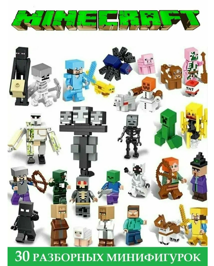 Набор включает в себя 30 фигурок, из которых можно собрать коллекцию "Майнкрафт".