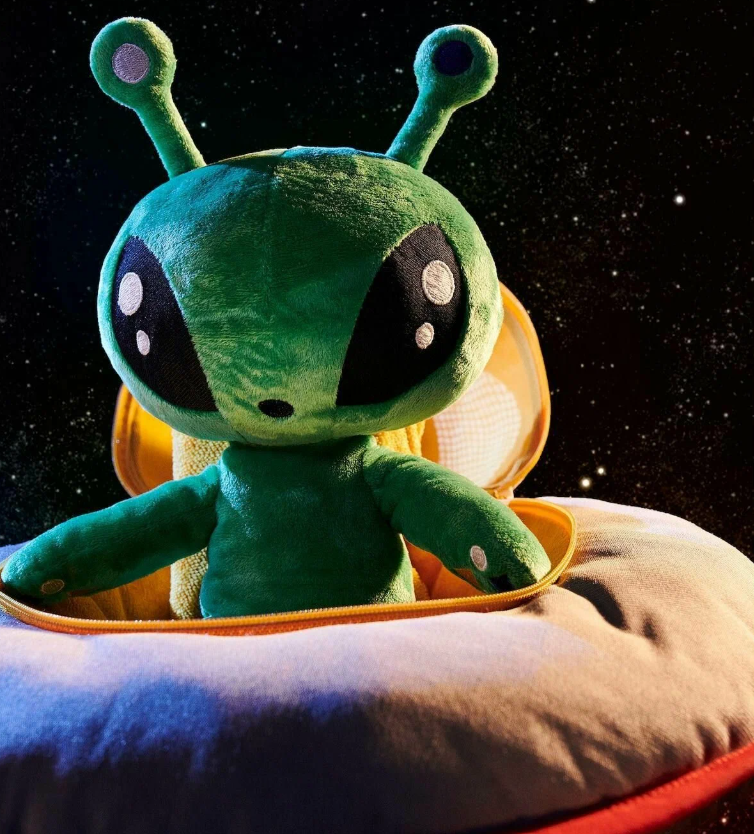 Мягкий инопланетянин — лучший друг для воображаемого полета в космос. Что на этот раз ваш ребенок будет делать со своим супергероем?