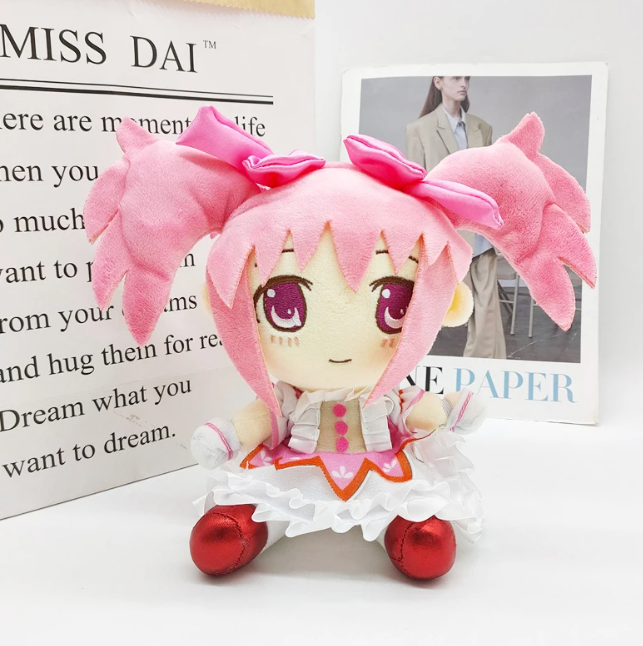 Мягкая игрушка Мадока Канамэ / «Девочка - волшебница Мадока» одна из пяти главных волшебниц аниме и манги «Девочка-волшебница Мадока Магика. Она второгодка в средней школе Митакихары и учится в одном классе с Саякой и Хомурой. В 12-м эпизоде она становится богом, а именно Богиней Мадокой. Мадока — самая обычная восьмиклассница. Она очень добрая и любит своих друзей. Она всегда стремится помогать людям, даже если это плохо заканчивается. Став волшебницей, она стала увереннее в себе и стала меньше бояться и тревожиться / Puella Magi Madoka Magica.
