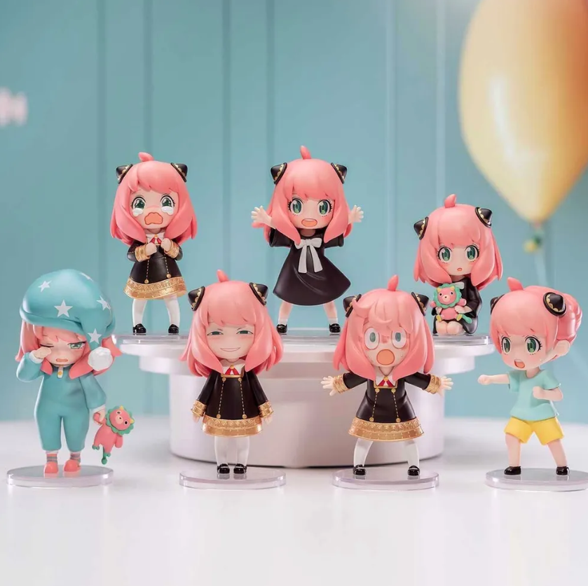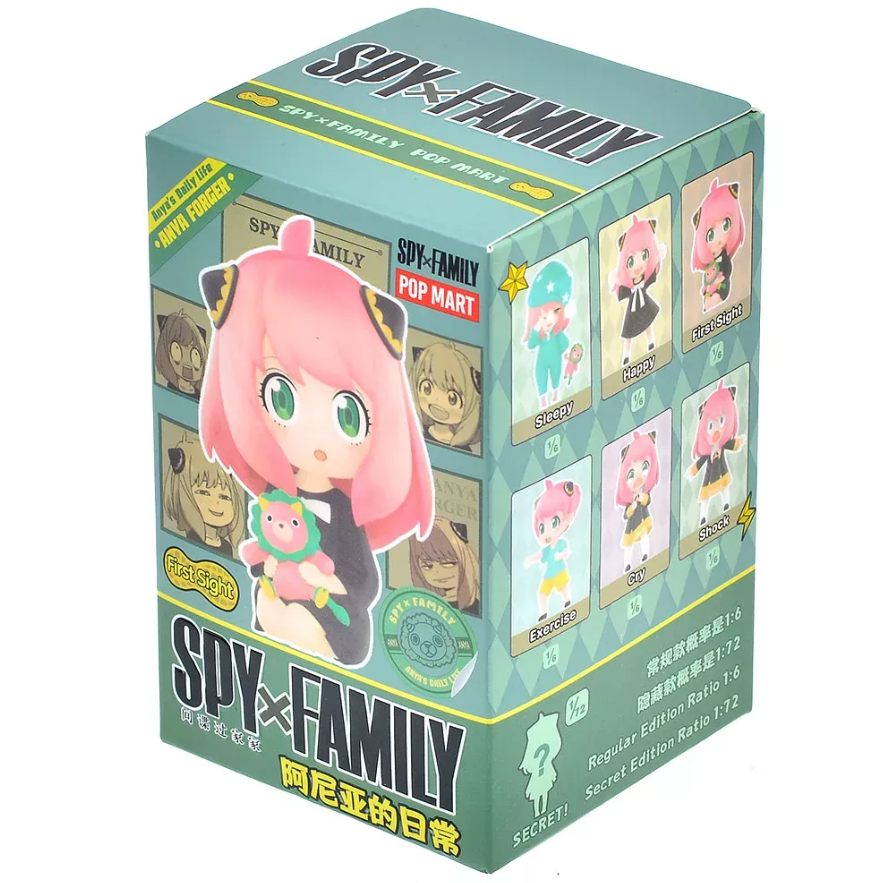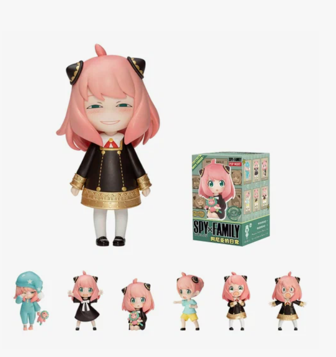 Герои сериала "Повседневная жизнь Ани" из "Шпионской семейки" в магазине POP MART: игрушки-невидимки - это предметы коллекционирования в запечатанных коробках, и покупатели не знают о содержимом, пока не откроют коробку. Серия содержит 6 обычных персонажей и 1 скрытую версию (непринужденная улыбка).