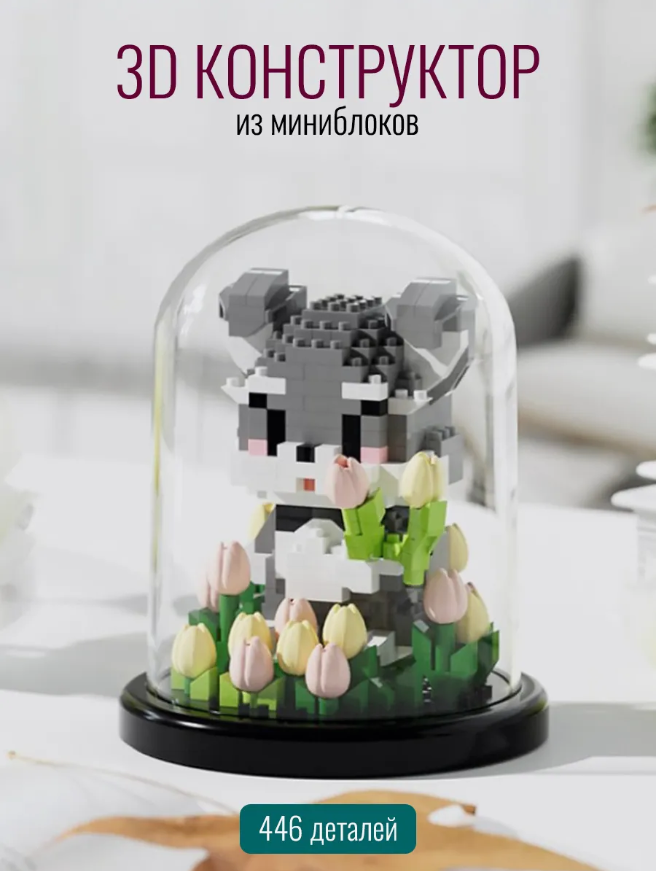 Представляем вашему вниманию очаровательный конструктор 3D "Цветы в колбе: Собачка с тюльпанами", который включает 446 мини-деталей с высокой детализацией. Этот уникальный набор соблазнит вас возможностью создать яркий и жизнерадостный образ милой собачки, окружённой изысканными тюльпанами.
