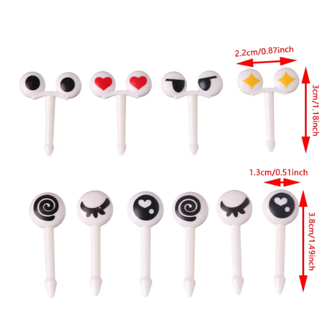 Набор из 10 пластиковых зубочисток  для десертов, фруктов в форме глазок