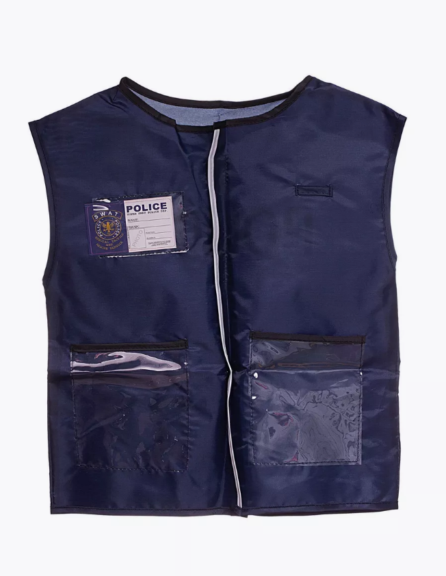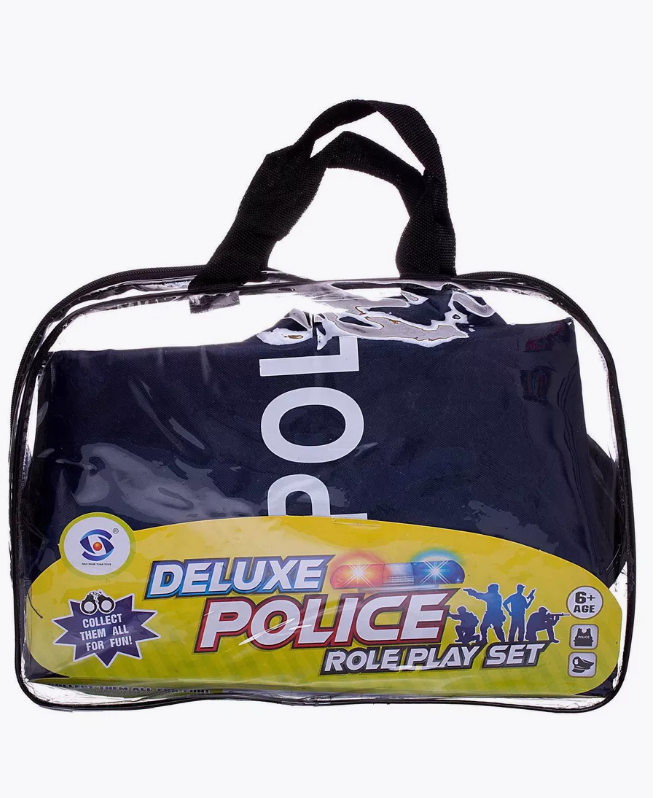Маленький страж порядка готов охранять порядок и следить за безопасностью в игрушечном городе! Помогут ему тематические сюжетно ролевые игровые предметы из набора Полиция. Полицейская форма детская. Пуленепробиваемый жилет и полицейская фуражка полицейского с козырьком и эмблемой придадут внушительный вид юному блюстителю порядка а многочисленные игровые предметы отлично дополнят его образ полицейского. В большой сумке с удобными ручками будет удобно хранить и брать с собой набор в любую поездку. Игра профессии для мальчиков с набором Полиция гарантировано будет интересной и увлекательной. Размер сумки 31х6,5х33 см. Жилет подойдет ребенку в возрасте 3-6 лет. Комплектность: форма полиции детская (жилет - 1 шт., полицейская фуражка детская), металлические наручники детские, металлический ключ - 2 шт., защитные очки, металлический свисток полицейский на веревочке, рация, полицейский жезл, значок полицейского, сумка, карточка, детский пластиковый нож, детская пластиковая граната макет имитация, детский пластиковый компас имитация.