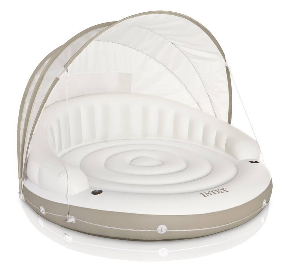 Просторный плот выглядит, действительно, стильно и неповторимо. Находясь на таком королевском ложе, вы сможете ощутить всю роскошь и насладиться комфортом. Плот идеально подойдет для отдыха как на воде, так и на суше. Такой необычный дизайн по истине будет украшением любого водоема. Плот имеет съемный тент, который спрячет вас от палящего солнца. Встроенные подстаканники удобны во время отдыха. Две воздушные камеры, которыми оснащен надувной плот, обеспечат дополнительную безопасность. Отдых на удобном ложе со встроенной спинкой позволит расслабиться и весело провести время с любимыми друзьями. Насос в комплекте не предусмотрен, его можно приобрести отдельно.