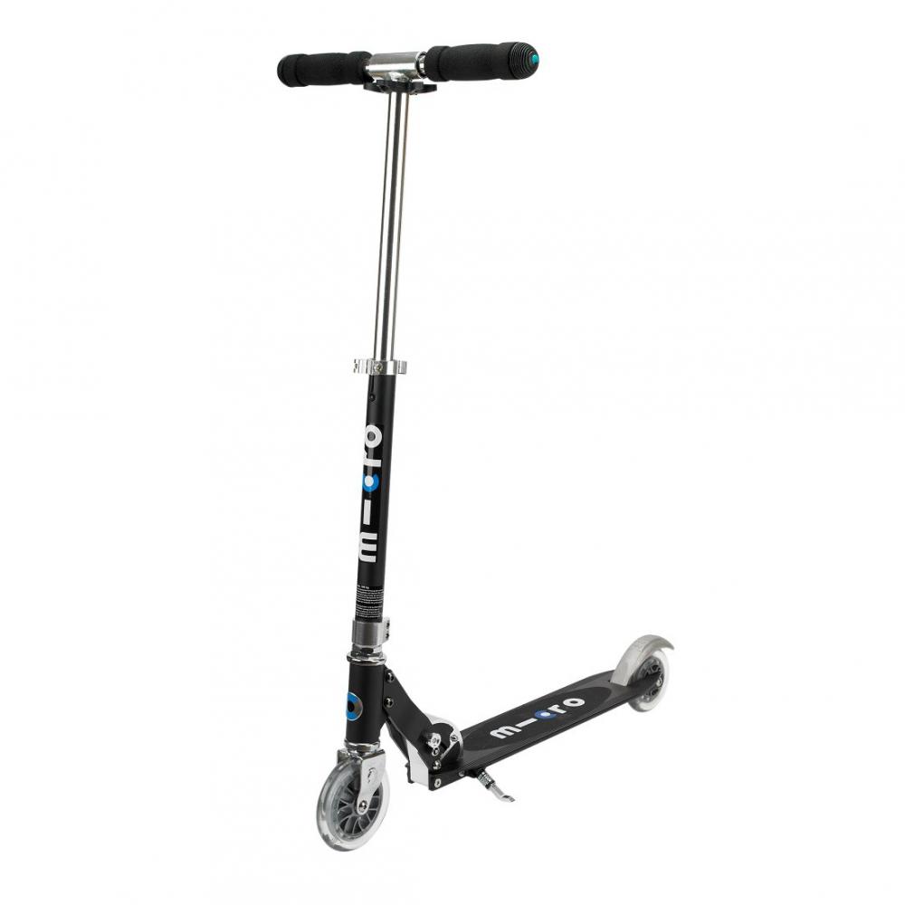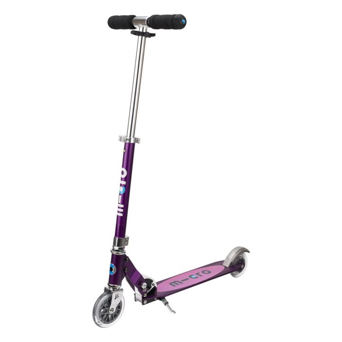 Характеристики: Цвет : черный и сиреневый Для детей и взрослых Полностью металлическая рама Удобный механизм складывания Ручки складываются Антискользящее покрытие деки для безопасного катания Полиуретановые колеса Подшипники ABEC 5 Задний ножной тормоз Подножка легко убирается Максимальная нагрузка — 100 кг
