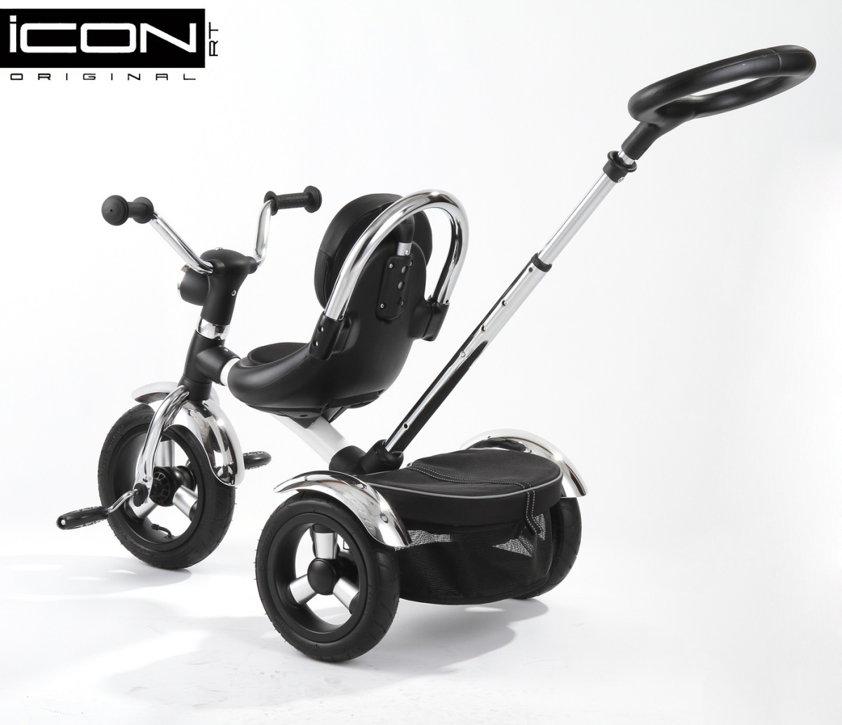 Маленьким гонщикам и просто любителям прокатиться с ветерком понравится трехколесный велосипед ICON 2 RT. У модели надувные колеса и маленькое, но очень удобное сиденье, которое имеет 8 положений (ближе или дальше от руля). Также вы можете снять сиденье и, развернув его на 360 градусов, установить «лицом» к маме. Для большего комфорта у сидения есть мягкая подушечка, которую можно отрегулировать по высоте. Весьма длинная и удобная родительская ручка «телескопик» установлена под идеальным углом и подходит под любой рост взрослого, так как ее высоту можно легко поменять. Также родительская ручка позволит с легкостью управлять велосипедом.