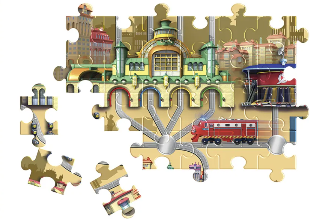 В комплекте: 6 деталей пазла. Собери коллекцию паровозиков и сложи железнодорожную карту!