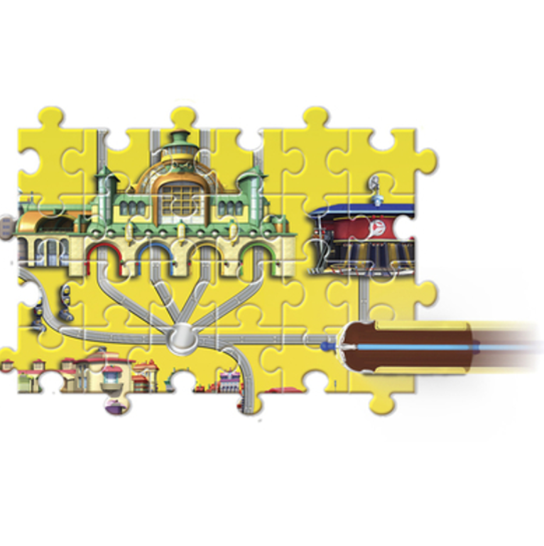 В комплекте: 6 деталей пазла. Собери коллекцию паровозиков и сложи железнодорожную карту!
